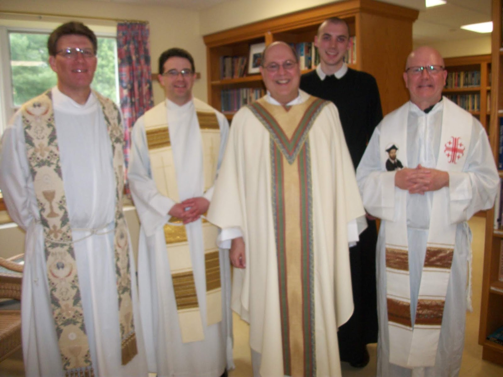 The priests that celebrated with him are Left to right, Reverends Thomas A. Odorizzi, C.O., Jeffrey M. Calia C.O. Peter Cebulka C.O> Provost and Kevin P. Kelly C.O. and in the back Brother Steven