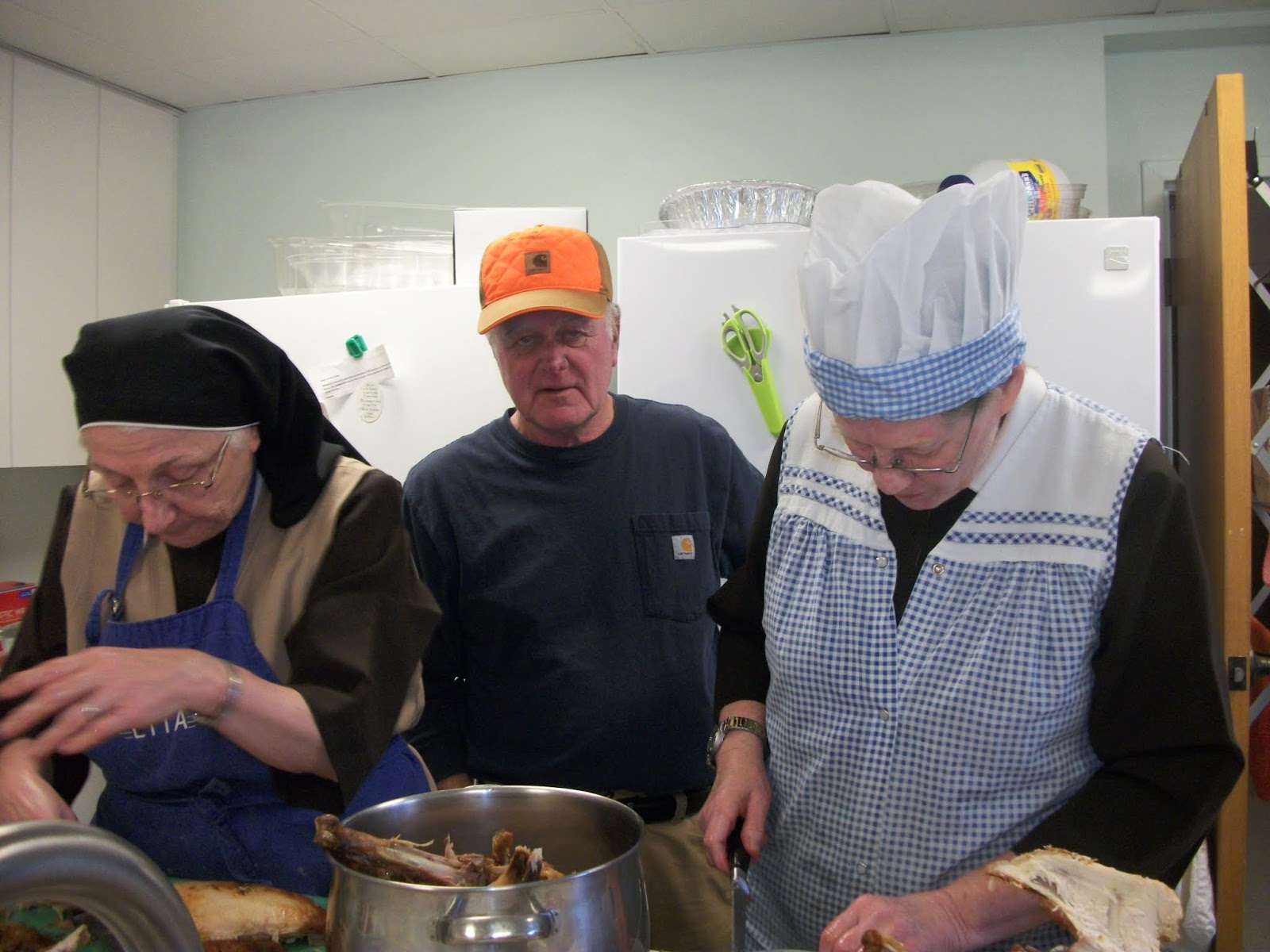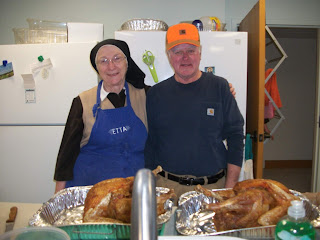 Our Sisters are preparing the Thanksgiving dinner as the roving reporter roves. blessings to you all. Our dear friend, Bernie McClain, roasted our Turkey in a peanut oil fryer .