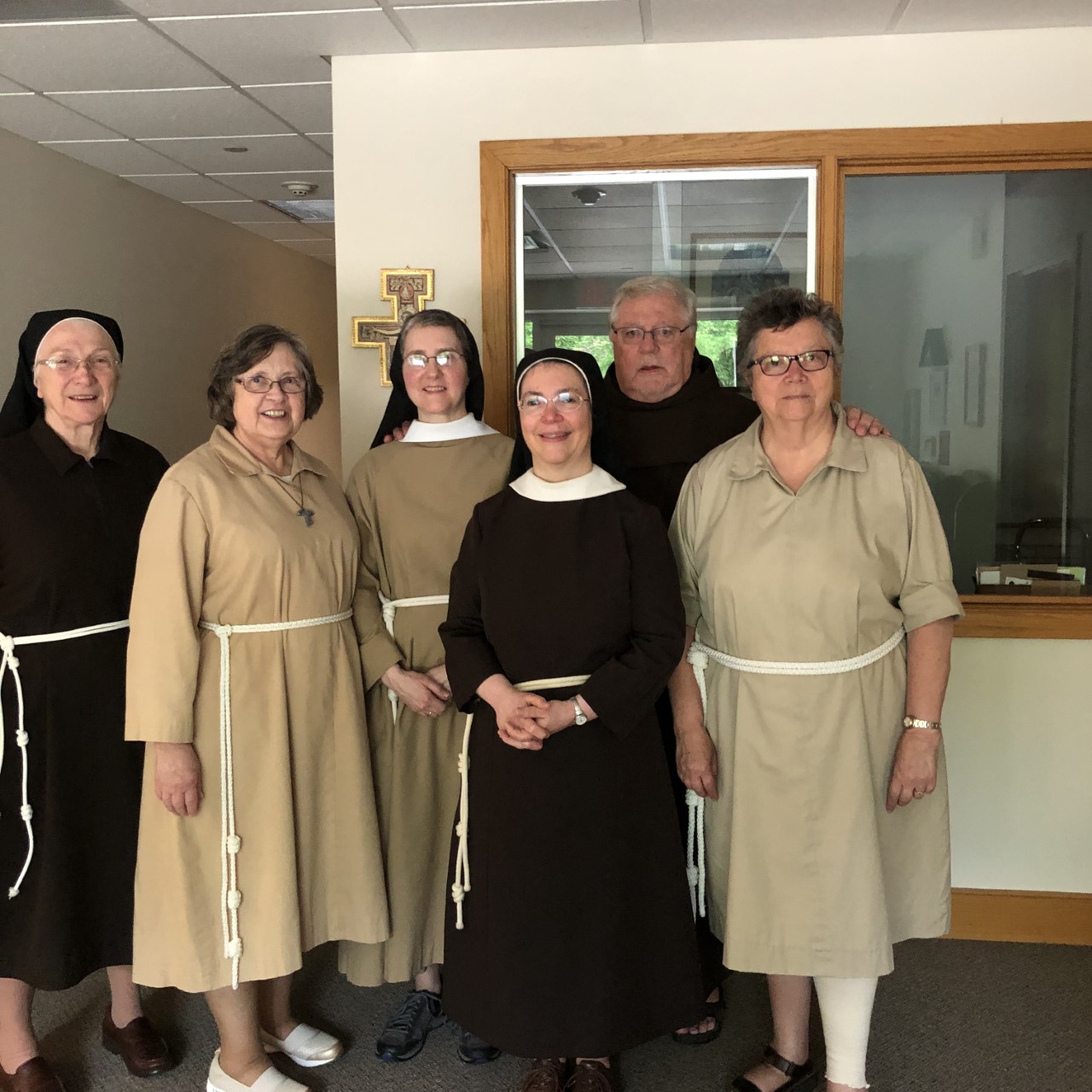 From left to right: Sisters Etta L Patton, Abbess of Monastery in Chesterfield, Jane Sorensen, Montana, Anne Bartal, Langhorne, PA, Donna Padalino, Chesterfield, Friar Tom Hartle OFM, Religious Assistant for the Poor Clares, and Nancy Shinely , Travelers Rest, SC. Also Tom and the Photographer on a selfie.